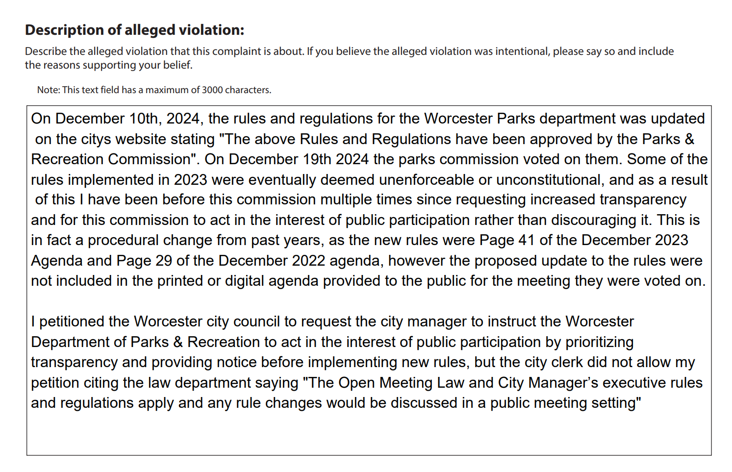 The Parks Commission addresses my complaint